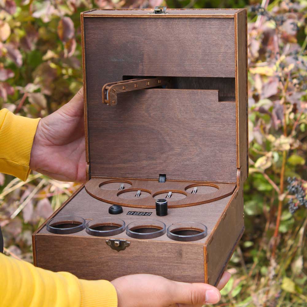 У комплекті: наливатор, USB-кабель, харчовий шланг, гравіювання та 4 чарки.