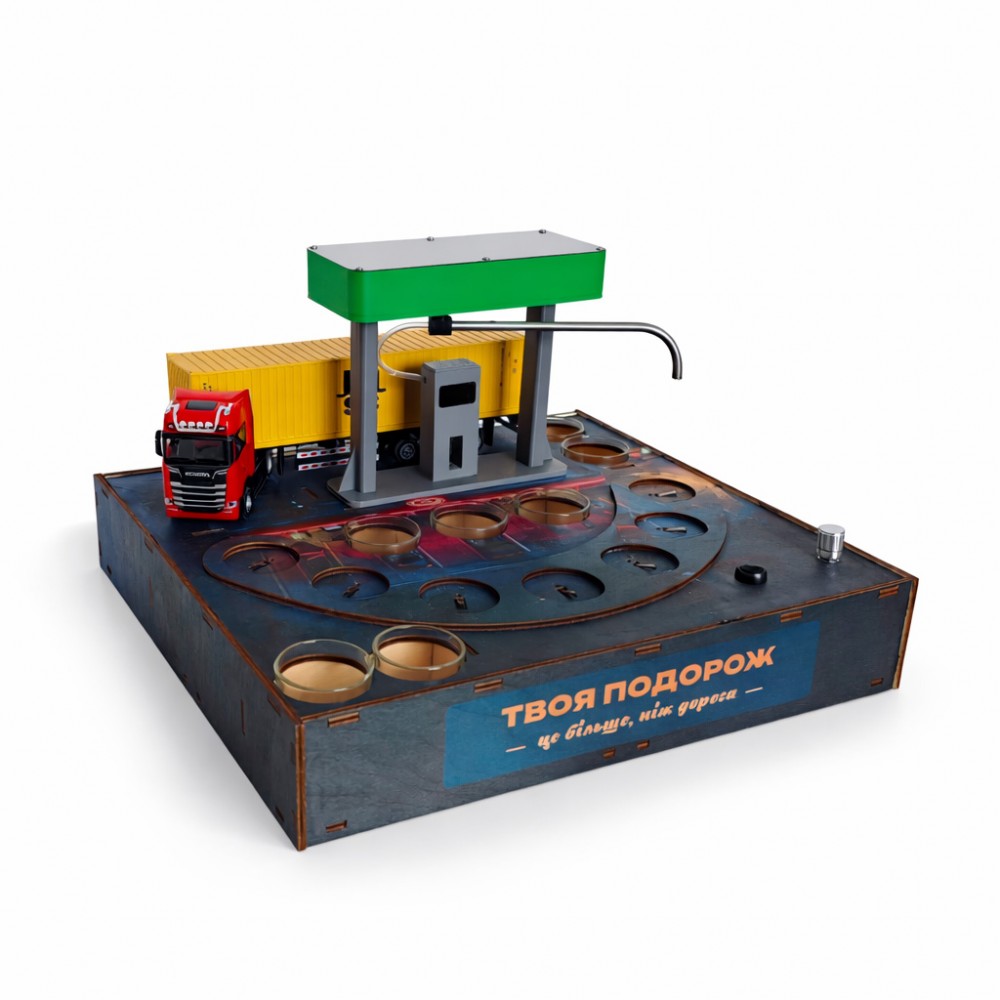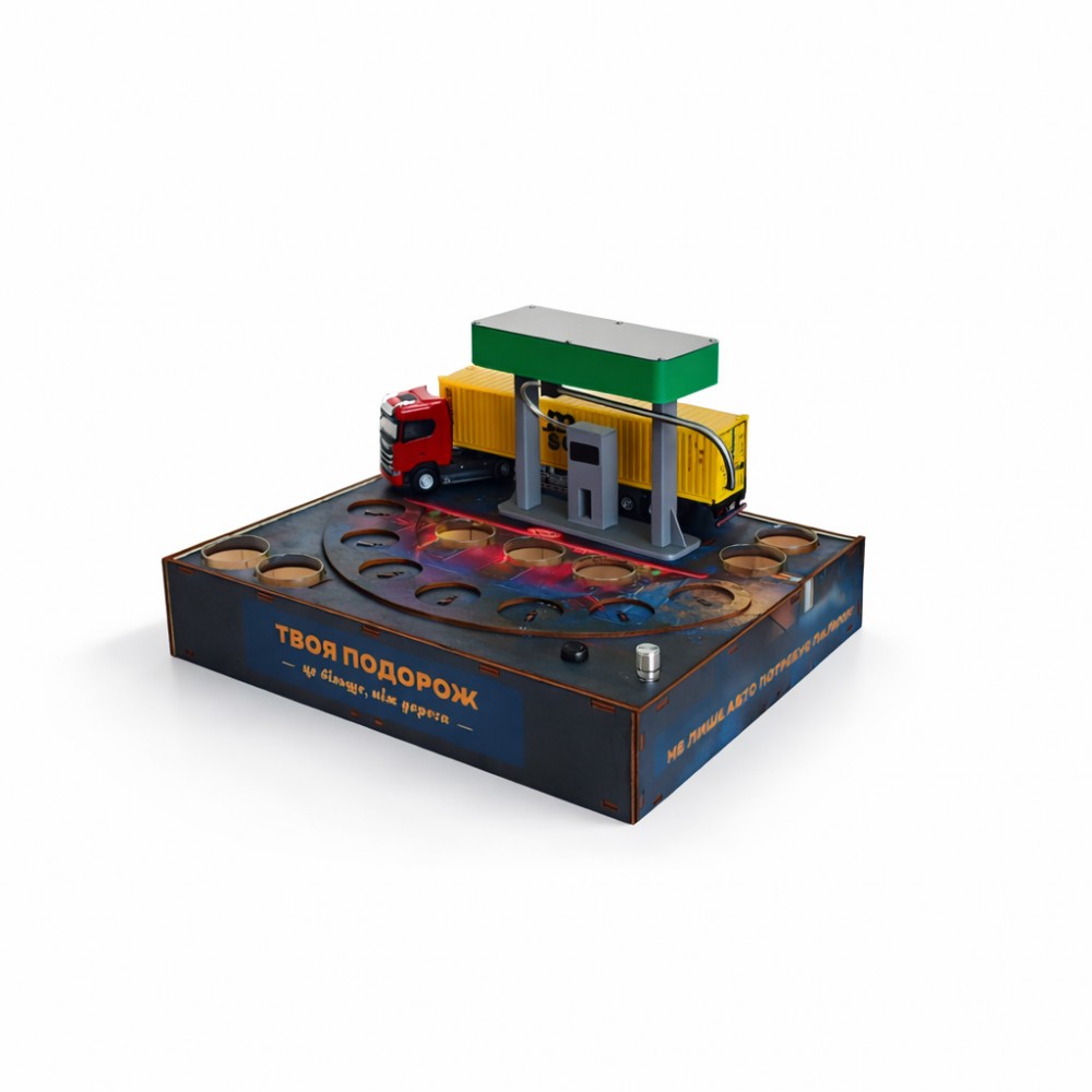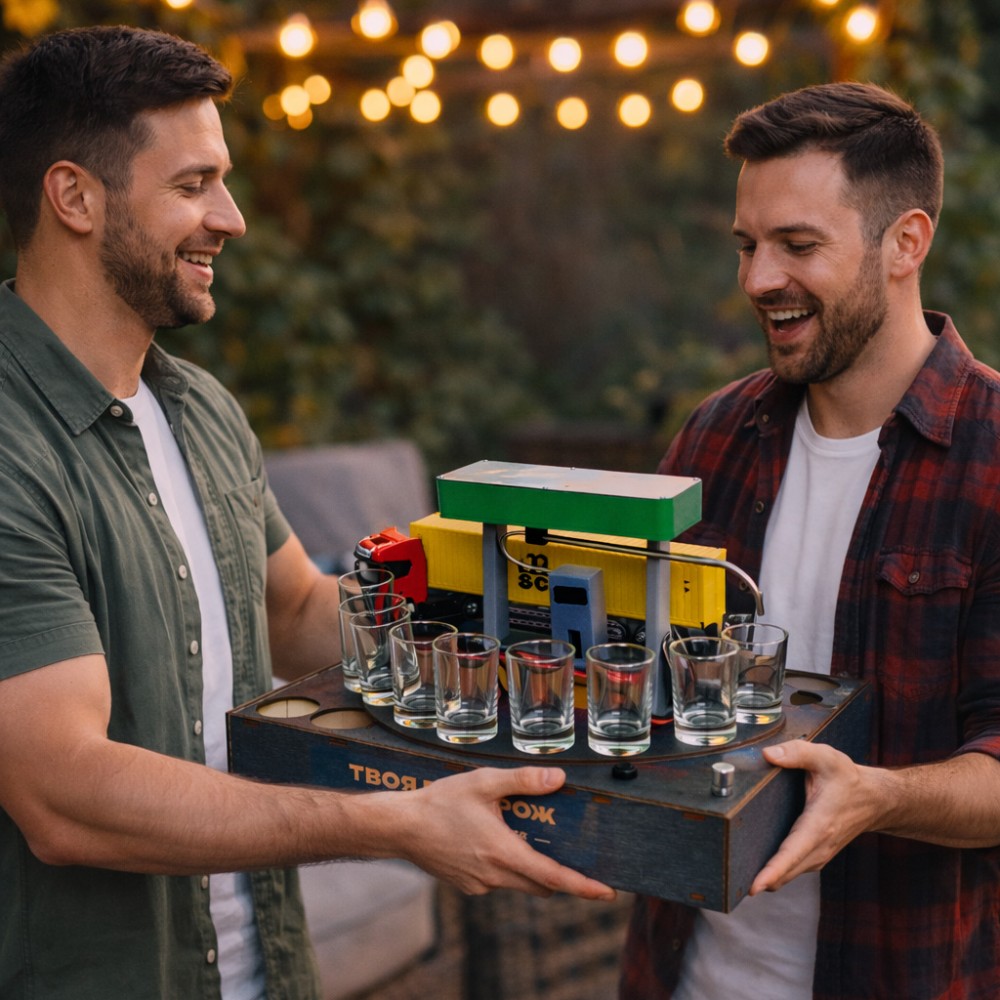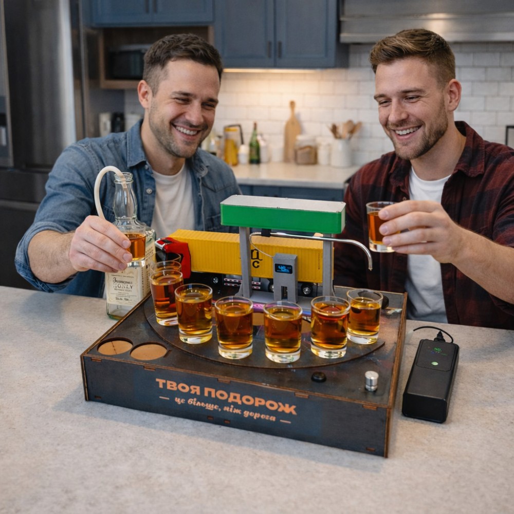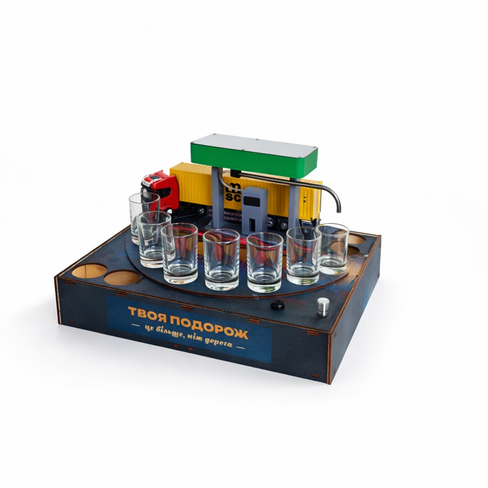 Алкогольный наливатор АЗС на 4 рюмки — это функциональный и эффектный барный аксессуар, который превращает процесс разлива алкоголя в настоящее шоу. Конструкция в виде автозаправочной станции позволяет равномерно наливать напиток сразу в четыре рюмки одним движением.