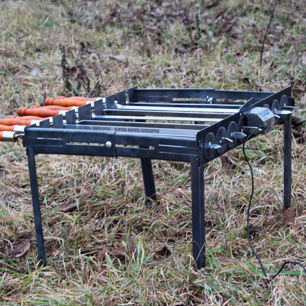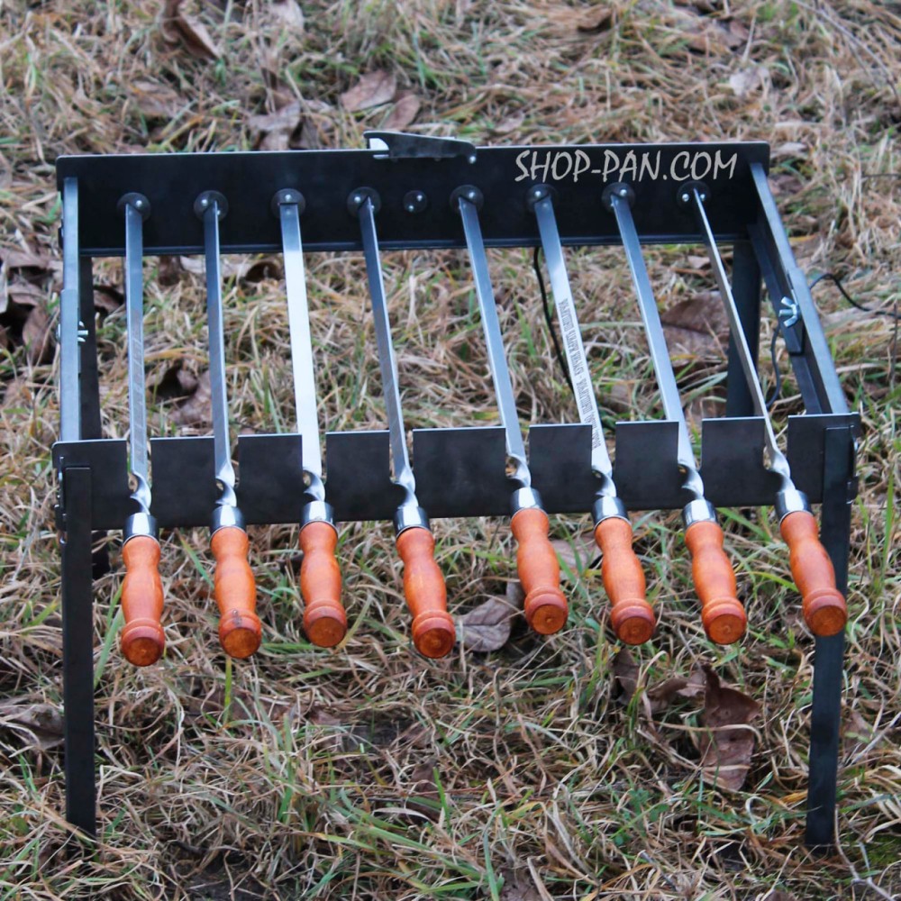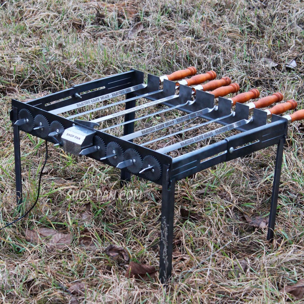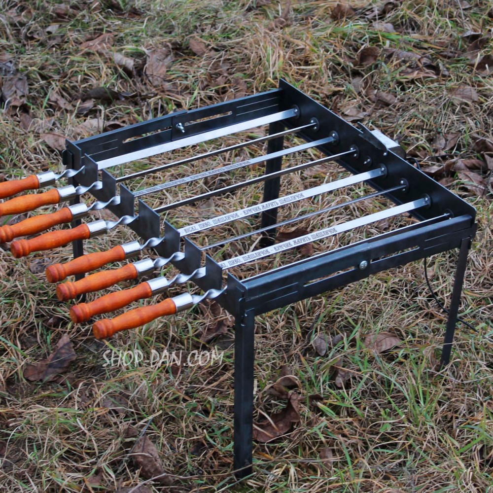 Туристическая автоматическая шашлычница на ножках на 8 шампуров - это идеальный выбор для тех, кто хочет приготовить вкусный шашлык на природе быстро и удобно.