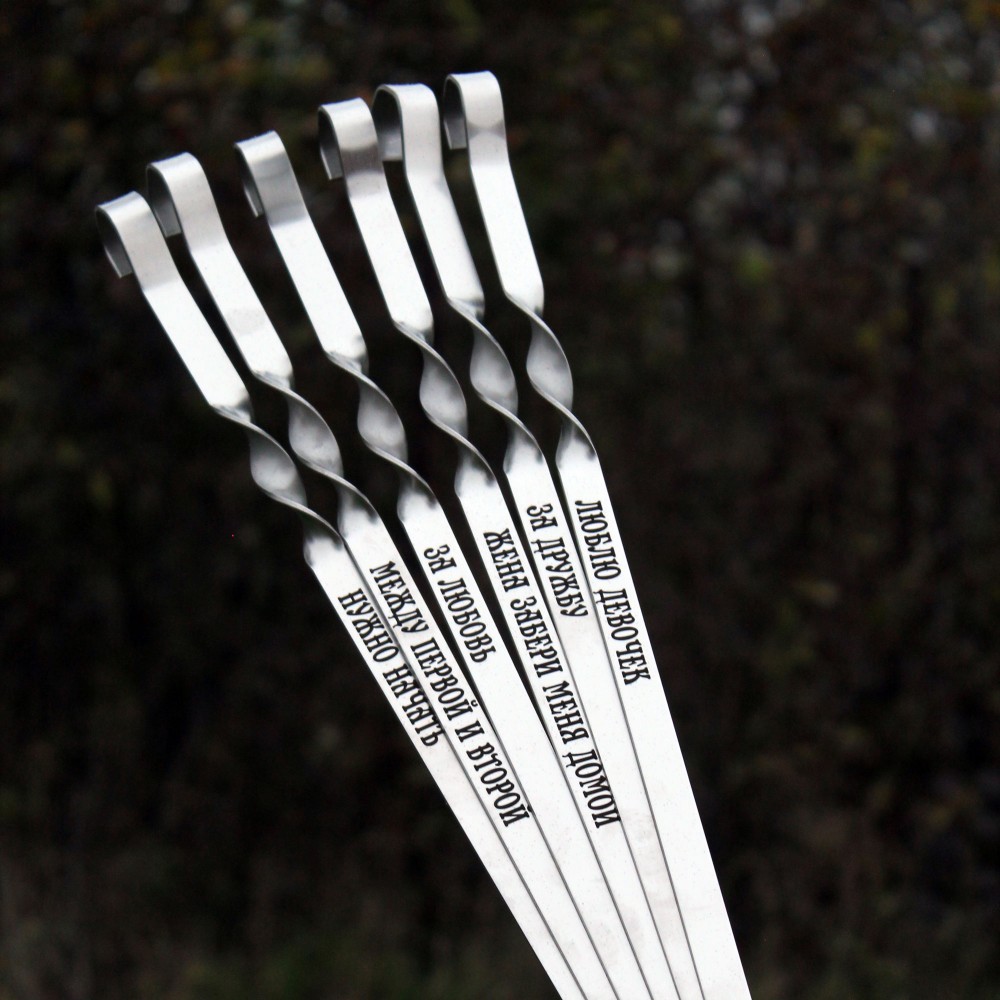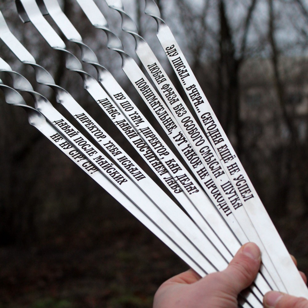 На шампурах можно нанести уникальную гравировку, а также упаковать в деревянную коробку.